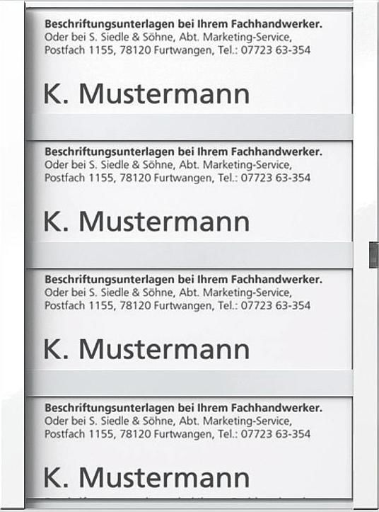 Siedle TM612-4/BTM650-04 WH Namensschild kpl Weiß-Hochglanz 029960