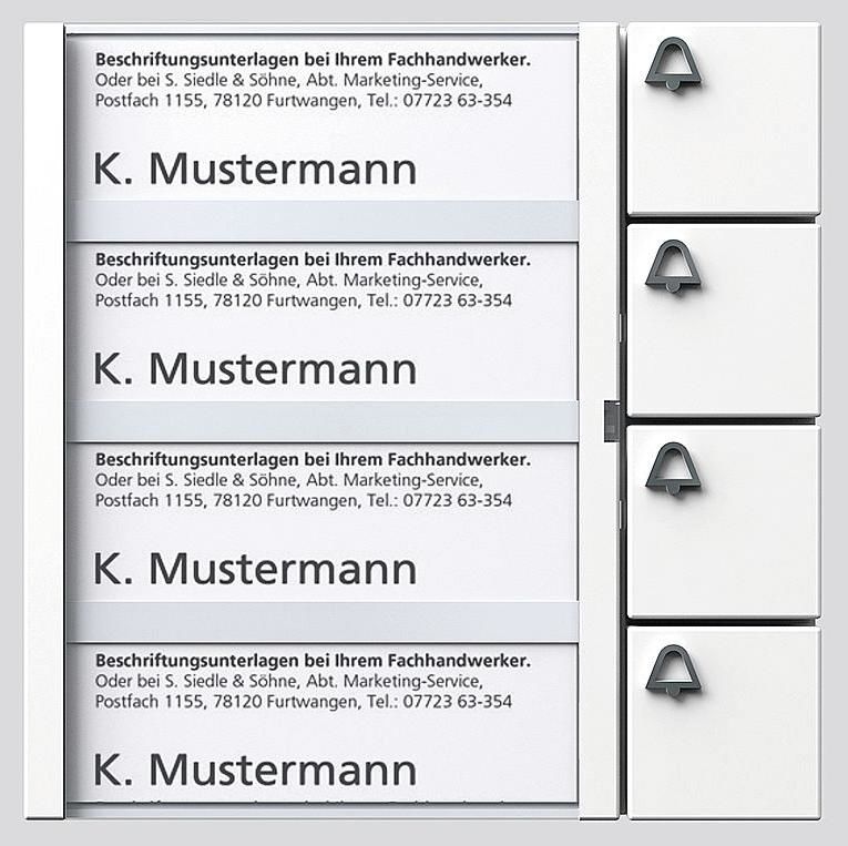 Der Artikel Siedle TM 612-4 W Tastenmodul 4+4Taste Glockensymbol Weiß 035525 ist derzeit auf Lager