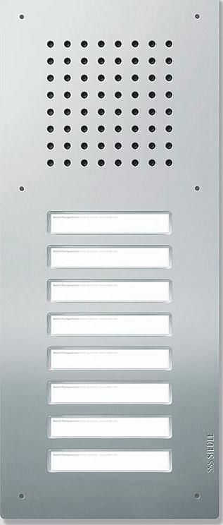 . 8 Ruftasten mit hinterleuchtetem Namensschild, frontseitig auswechselbar, akustische Rückmeldung beim Betätigen einer Ruftaste aktivierbar