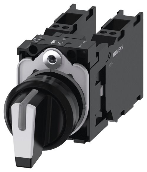 Siemens 3SU11002BL603LA0 Knebelschalter beleuchtbar 22mm rund sw weiß 2xS+Ö