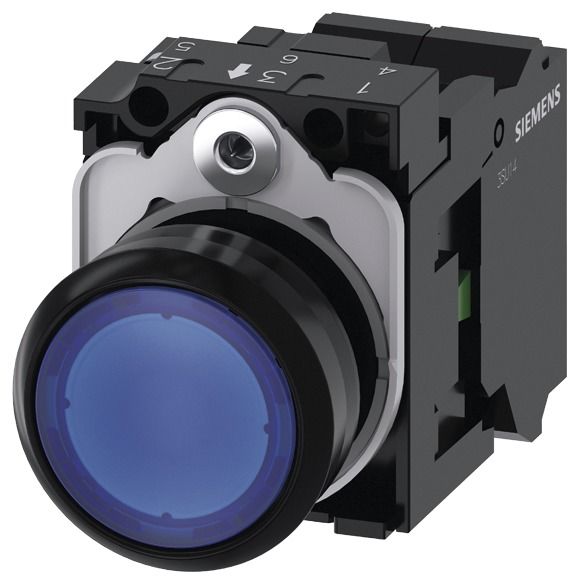 Siemens 3SU11020AB503BA0 Drucktaster beleuchtet 22mm rund blau Knopf 1S AC/DC 24V