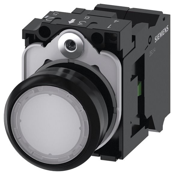 Siemens 3SU11020AB603BA0 Drucktaster beleuchtet 22mm rund weiß Knopf 1S AC/DC 24V