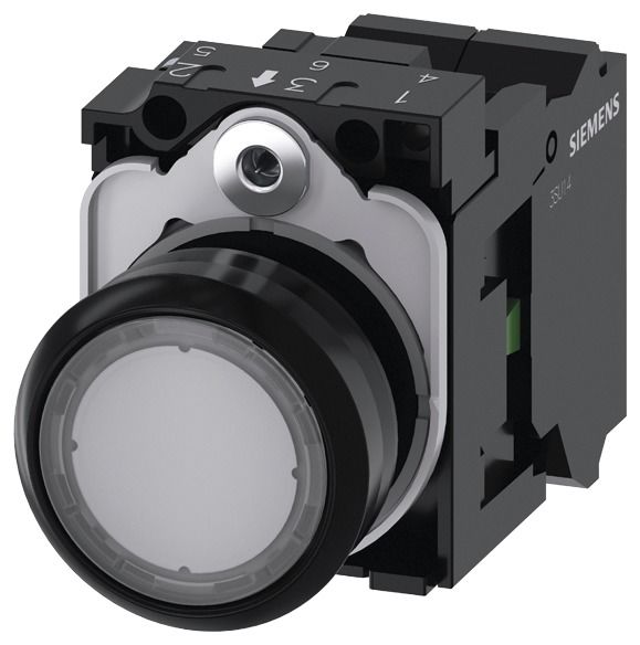 Siemens 3SU11020AB703BA0 Drucktaster beleuchtet 22mm rund klar Knopf 1S AC/DC 24V
