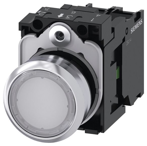 Siemens 3SU11520AB601BA0 Drucktaster beleuchtet 22mm rund weiß Knopf 1S AC/DC 24V