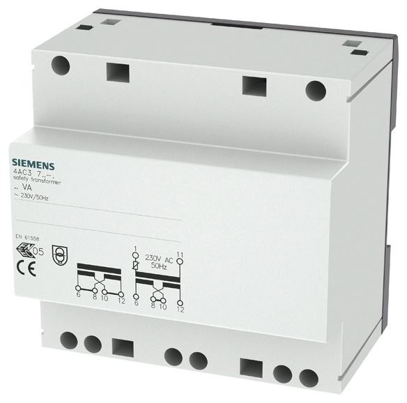 Siemens 4AC3763-0 Sicherheitstrafo 63VA Prim 230V AC, 50Hz, Sek 2X12V / 24V AC