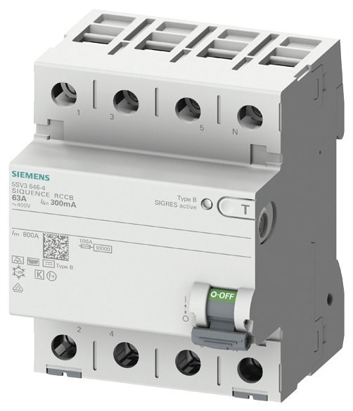 Siemens 5SV33444KK14 FI-Schalter Typ B+ 40A 3+N-pol 30mA 400V 4TE kurzzeitverzinkt