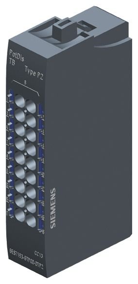 SIMATIC ET 200SP, Potenzialverteilermodul, PotDis-Terminalblock, PotDis-TB-P2-B, 18 x P2-Potenzial, Push-In-Klemmen Verpackungsmenge: 1 Stück, SIMATIC ET 200SP ist ein modular aufgebautes skalierbares und hochflexibles, dezentrales Peripheriesystem. Durch den kleinen Footprint ist es insbesondere für den Einbau in kleinen maschinennahen Schaltkästen konzipiert. Die Module können entweder direkt an eine ET 200SP CPU gesteckt oder via PROFINET oder PROFIBUS an eine Zentralsteuerung angeschlossen werden. SIMATIC ET 200SP kann mit bis zu 64 Peripheriemodulen ausgebaut werden, die in beliebiger Kombination gesteckt werden können. Das System bietet einsehr umfangreiches Spektrum an Baugruppen. Viele Module sind zudem in verschiedenen Ausprägungsstufen verfügbar, was die Skalierbarkeit bezüglich Funktionalität und Preis deutlich verbessert. So stehen neben Modulen mit Standardfunktionalität (ST) auch solche mit erweitertem Funktionsumfang und Diagnose (HF High Feature / HS High Speed) zur Verfügung. Für preissensitive Anwendungen stehen Module mit Basisfunktionalität (BA) bereit. Der Vorteil des ET 200SP Systems liegt in ihrer einfachen Anwendbarkeit, wie z. B. durch die freie Wahl der PROFINET-Anschlusstechnik über den Busadapter, die werkzeuglose Verdrahtung durch Push-In Technologie, eine verbesserte Zugänglichkeit der Verdrahtung durch neue Anordnung der Federöffner neben der zugehörigen Leiteröffnung und der kanalgenauen Diagnosefunktionen. Durch die Möglichkeit Modul- und Klemmenboxwechsel im laufenden Betrieb vorzunehmen, dem sog. Hot-Swapping, werden Verfügbarkeit und Produktivität der Maschine sichergestellt. Die skalierbare und kostenoptimierteKonfiguration einer ET 200SP - Station wird durch das umfassende Spektrum von Signalbaugruppen gewährleistet. Es stehen neben digitalen und analogen Ein- und Ausgabebaugruppen jeweils auch fehlersichere Varianten für Anwendungen bis SIL 3 / PLe zur Verfügung. Dies gilt ebenso für die integrierten Motorstarter, welche für Motoren bis 5,5 kW geeignet sind. Energy Meter zur Messung und Analyse des Energieverbrauchs, IO-Link Master (V1.1.) sowie viele weitere Kommunikations- und Technologiemodule ermöglichen es dem System sich an jede Automatisierungsaufgabe anzupassen. Mittels der Potentialverteilermodule, welche beliebig mit den enstprechend BaseUnits kombiniert werden können, kann durch den Wegfall von Reihenklemmen Platz im Schaltschrank eingespart und die Übersichtlichkeit zudem noch erhöht werden.