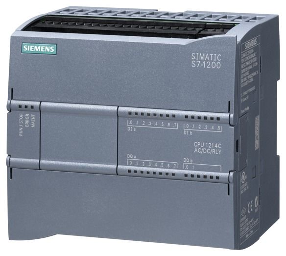 SIMATIC S7-1200, CPU 1214C, Kompakt-CPU, AC/DC/Relais, onboard I/O: 14 DI DC 24V, 10 DO Relais 2A, 2 AI 0-10V DC, Stromversorgung: AC 85-264V AC bei 47-63Hz, Programm-/Datenspeicher 150 KB SIMATIC S7-1200 Basic Controller - flexibel durch vielfältige Kommunikationsmöglichkeiten. Die Basic Controller sind erste Wahl, um Automatisierungsaufgaben im unteren und mittleren Leistungsbereich flexibel und effizient zu lösen. Die Zentralbaugruppen sind in ihrer Leistung skaliert, für unterschiedliche Eingangsspannungen und mit Transistor- oder Relaisausgängen verfügbar. Auch Safety-Varianten sind lieferbar. Neben den bereits integrierten Ein- und Ausgängen lassen sich die Kompakt-CPUs direkt auf dem Gerät oder mit unterschiedlichsten Signal- und Kommunikationsmodulen erweitern, um sie exakt Ihren Anforderungen anzupassen. HMI-Geräte sind über die integrierte Ethernetschnittstelle ebenfalls anschließbar. Der Speicher der CPU lässt sich per Memory Card erweitern, projektiert wird die SPS mit der Software STEP 7 Basic im TIA Portal. Die Micro-SPS hat vielfältige Vernetzungsmöglichkeiten über unterschiedliche Kommunikationsstandards durch integrierte Funktionen (PROFINET, Modbus, etc.) oder Zusatzmodule (IO-Link, AS-i, etc.) und bietet somit höchste Flexibilität bei dem Aufbau der Netze und der Topologie. Die Anwendungsgebiete für die S7-1200 sind aufgrund ihrer kompakten Bauform sehr vielfältig und reichen von einfachen Verpackungsmaschinen über Heizungsanlagen bis hin zum Einsatz als unterlagertes System bei großen Anlagen. Kompaktes Design, modularer Aufbau und integrierte IOs helfen Platz im Schaltschrank zu sparen. Die Projektierungssoftware STEP 7 ist in das TIA Portal eingebunden und greift damit auf eine gemeinsame Datenhaltung, ein einheitliches Bedienkonzept und durchgängige Kommunikationsdienste für alle Komponenten eines Systems zurück. Das bedeutet weniger Projektierungsaufwand und schnellere Inbetriebnahme.