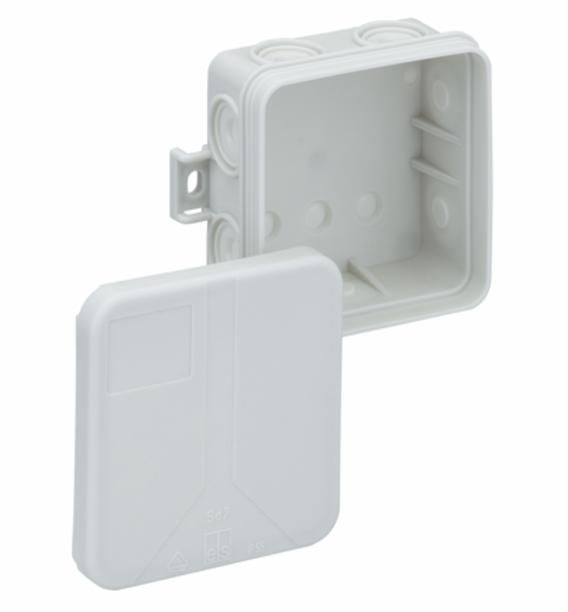 Thermoplast grau, halogenfrei, mit selbstdichtenden einführungen, Beschriftungsfeld, Außenbefestigung auch für Kabelbinder
