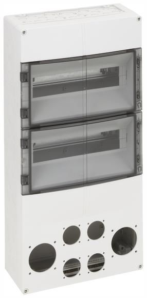 Öffnungen für Steckdosen:, Reiheneinbaugeräten: max. 12TE, 4x SCHUKO(R)-Steckdose (frontseitig) 16A, 230V, 2x Bohrung für CEE-Steckdose mit Durchmesser 66,5mm und Bohrlochabstand für Montage vertikal / horizontal von 60/60mm (frontseitig) Abmessungen: 300 x 600 x 142mmBeigefügtes Zubehör: Doppelmembranstutzen: 1x M20, 1x M25, 1x M32, Anbaustutzen: 1x M40, Verschlussstopfen, Abdeck- und Beschriftungsstreifen