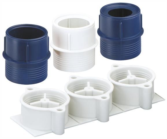 (geeignet zur Aufnahme von Installationsrohren) für Rohrauslässe in Decken und Wänden. Der Außendurchmesser des zu verwendenden Rohrtyps muß 2 - 3 mm größer als die Öffnung der Rohrkapsel sein, damit Dichtigkeit sowie Zugentlastung garantiert sind.