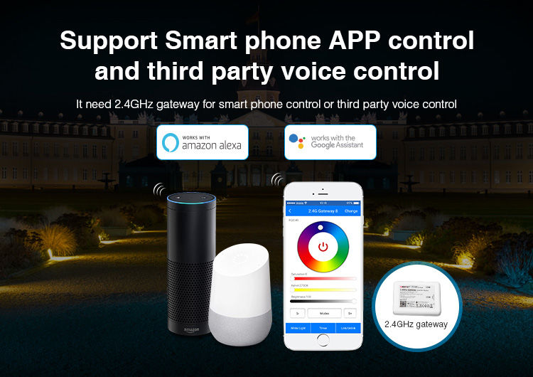Steuerbar mit Funkfernbedienung und/oder WLAN Controller für iOS und Android, beide separat erhältlich, siehe Zubehör