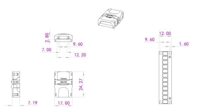 no wire, 2 pin, DC3V-24V / 5A for PCB width: 12mm single color Solderpad: 2