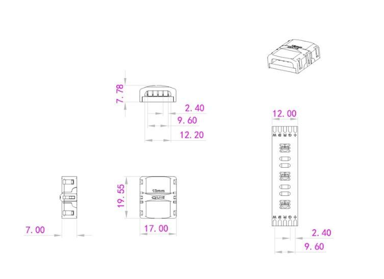 RGBW LED Strip Connector 5 Pin 12mm is workable to both RGB+White SMD and RGBW 4-in-1 tape light