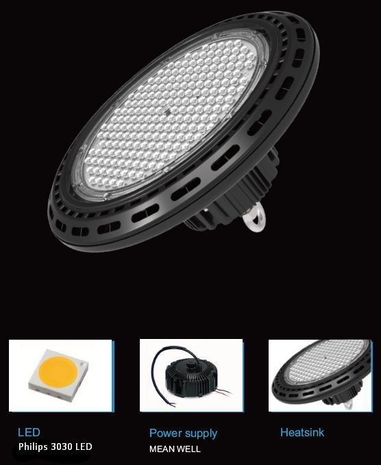 Leistung: 100 Watt Lichtstrom: 13500 lm Effizienz: 135lm/W Abstrahlwinkel: 120° CRI Ra: > 80 Lichtfarbe: neutralweiß Kelvin: 4000K ± 10% Arbeitstemp: -40 bis +55°C Schutzklasse: IP65, IK25,4 cm ( 10 Zoll )D" Kennzeichen nach EN 60598-2-24 Gewicht: 4,8Kg Durchmesser: 260mm Höhe komplett: 177,5mm