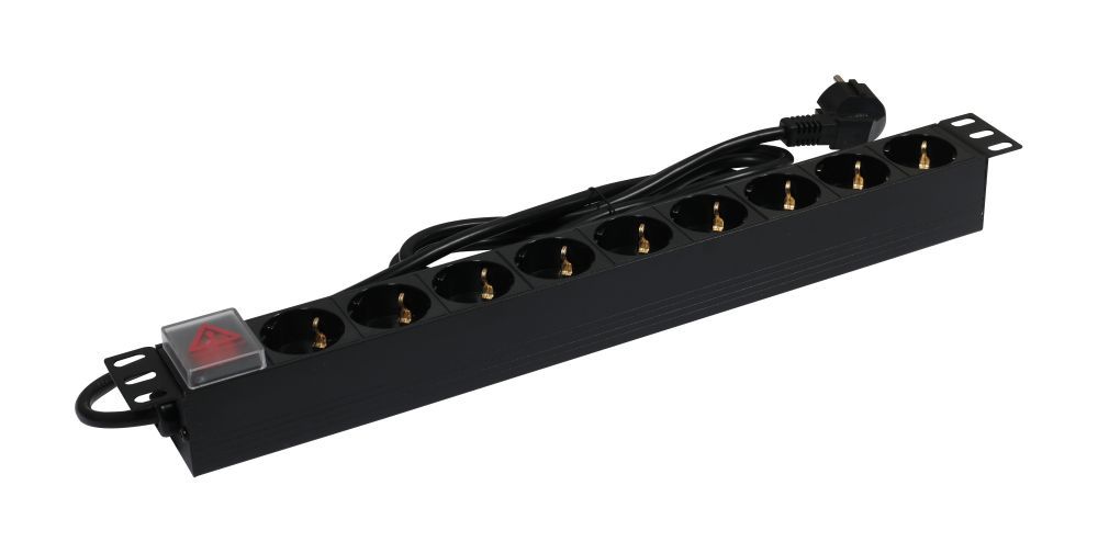 ALLNET 48,3 cm ( 19 Zoll )zbh. Steckdosenleiste, 9xDosen(CEE7)->Stecker(CEE7), Schalter, Schwarz, Synergy 21