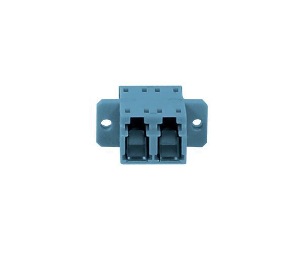 LWL-Kupplung,LC-Buchse/LC-Buchse, 9/125u Singlemode OS2, blau, duplex, PVC, Keramikhülse, mit Flansch, mit einseitiger Laserschutzklappe, Synergy 21