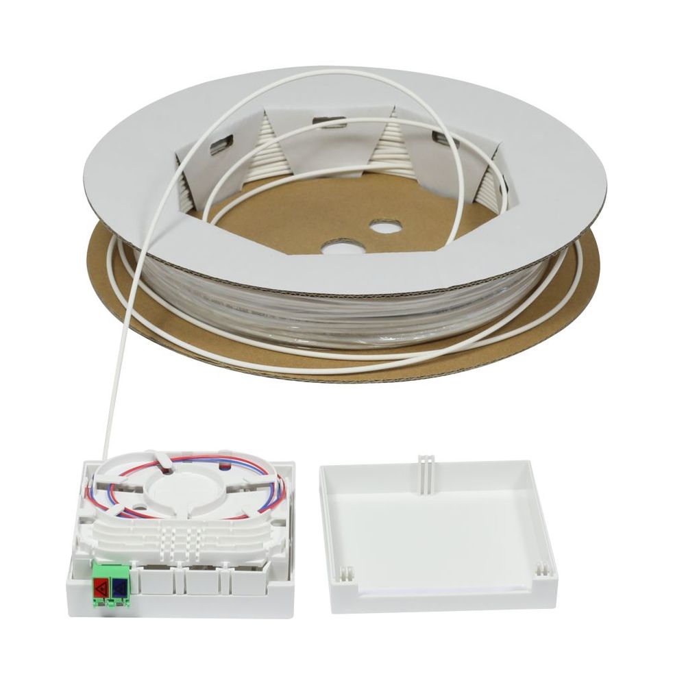 Der Artikel LWL-FTTH Compact Box vorkonfektioniert, 2xLC/APC -> open End, 40m, 9/125u, G.657.A2, 2-Faser, OD=2,2mm, Synergy 21 ist derzeit auf Lager