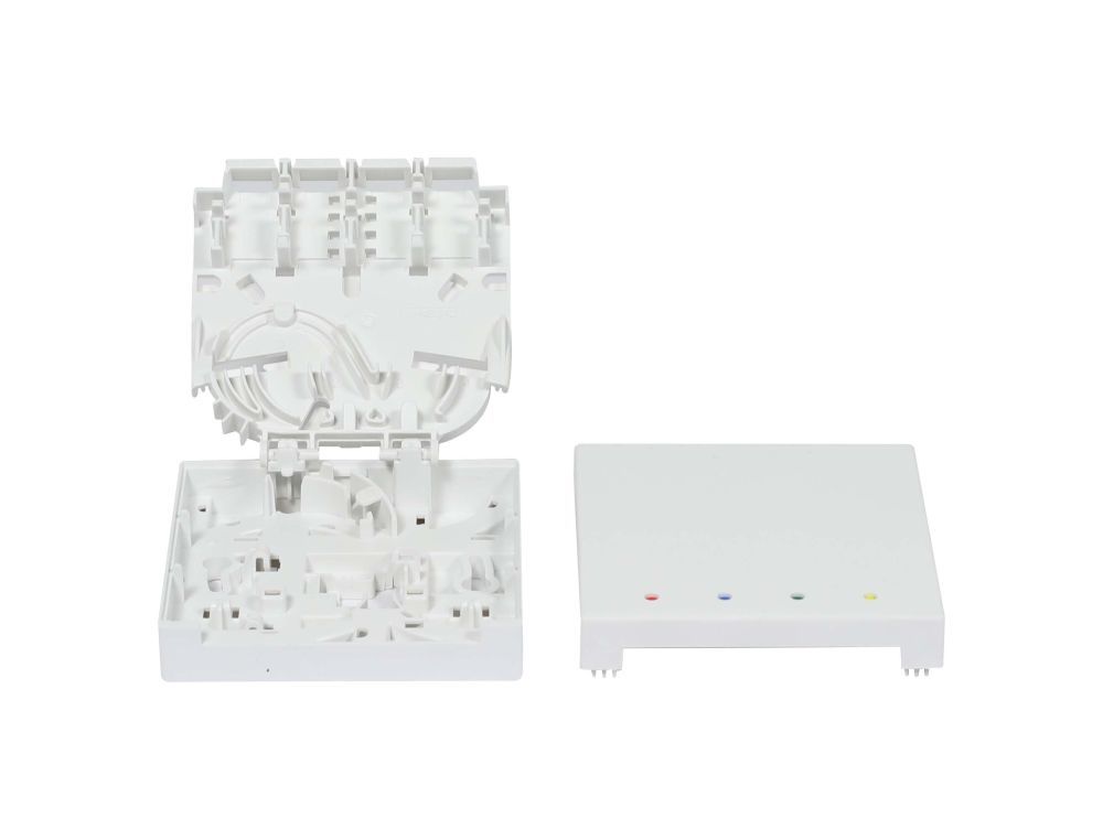 LWL-FTTH Wandgehäuse, für 4 Kupplungen SC-S oder LC-D 80x80 mit Kabelführung, DIN-Rail/Wand, Schrumpf, Synergy 21