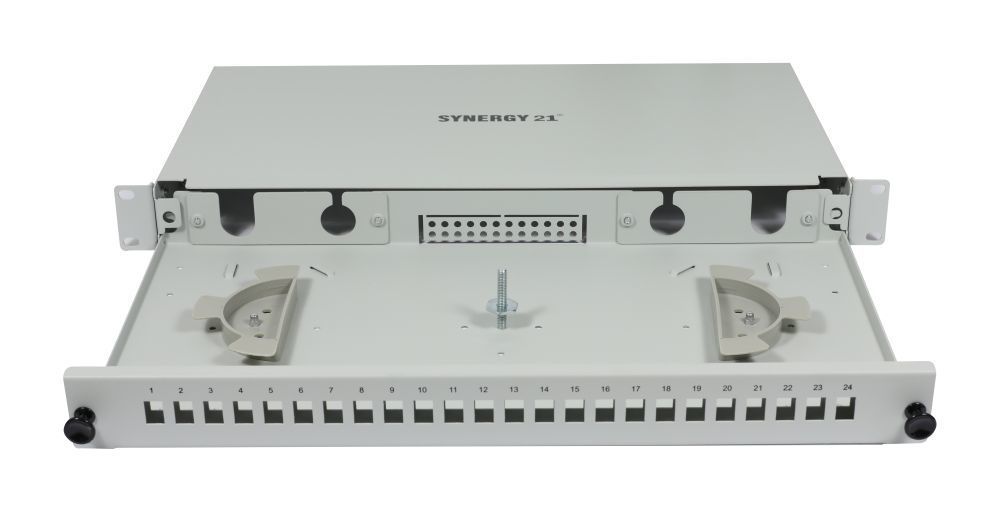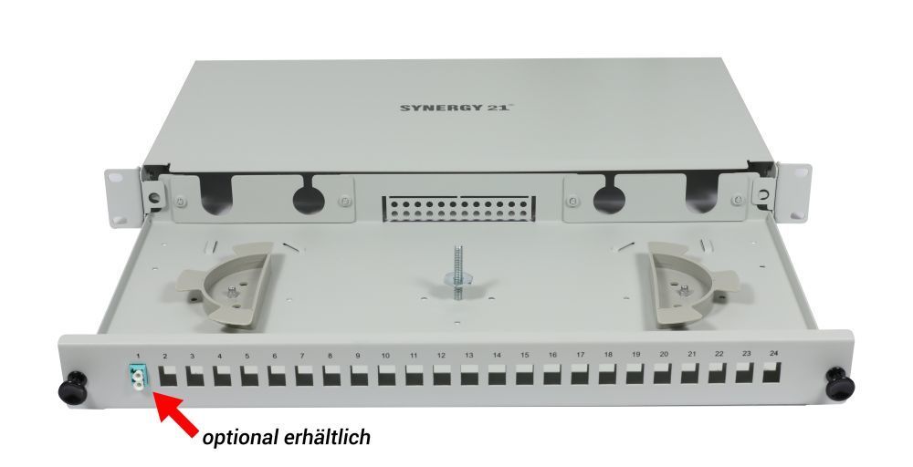 Passendes Zubehör für LWL-Patchpanel für 24xLC-Duplex-Buchsen, 48,3 cm ( 19 Zoll )/1HE, ohne LC-Kupplungen, Lichtgrau, Synergy 21,