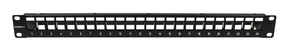 Patch Panel 24xTP,CAT6A, incl.Keystone Slim-line , 48,3 cm ( 19 Zoll ), 1HE(t 94mm), Schwarz, Synergy 21,
