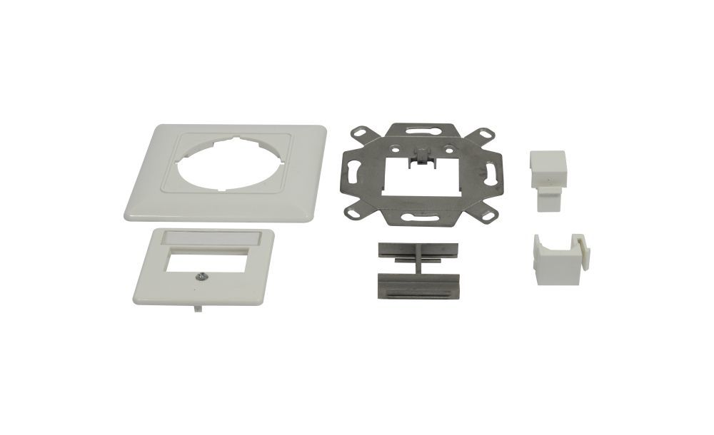 Keystone,Modulträger, UP Dosen für 2xTP-Modul, Reinweiss, 180Grad, Synergy 21, Keystone,Modul, TP-Buchse(RJ45), CAT6A, 500MHz, Slim-line, Synergy 21,
