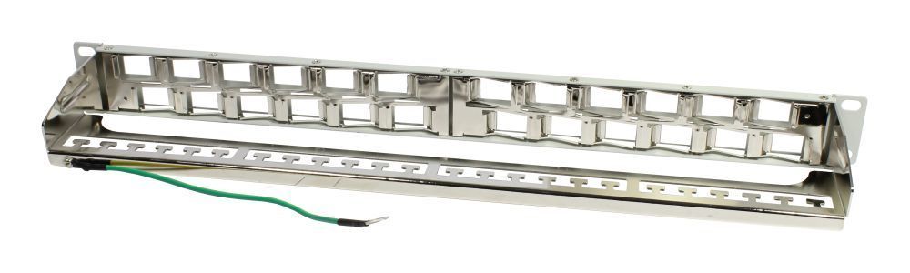 Passendes Zubehör für Keystone, Modulträger, 48,3 cm ( 19 Zoll )Patchpanel für 24xTP-Modul, 1HE(t 96mm) 45Grad Schrägauslass, Lichtgrau, Synergy 21,