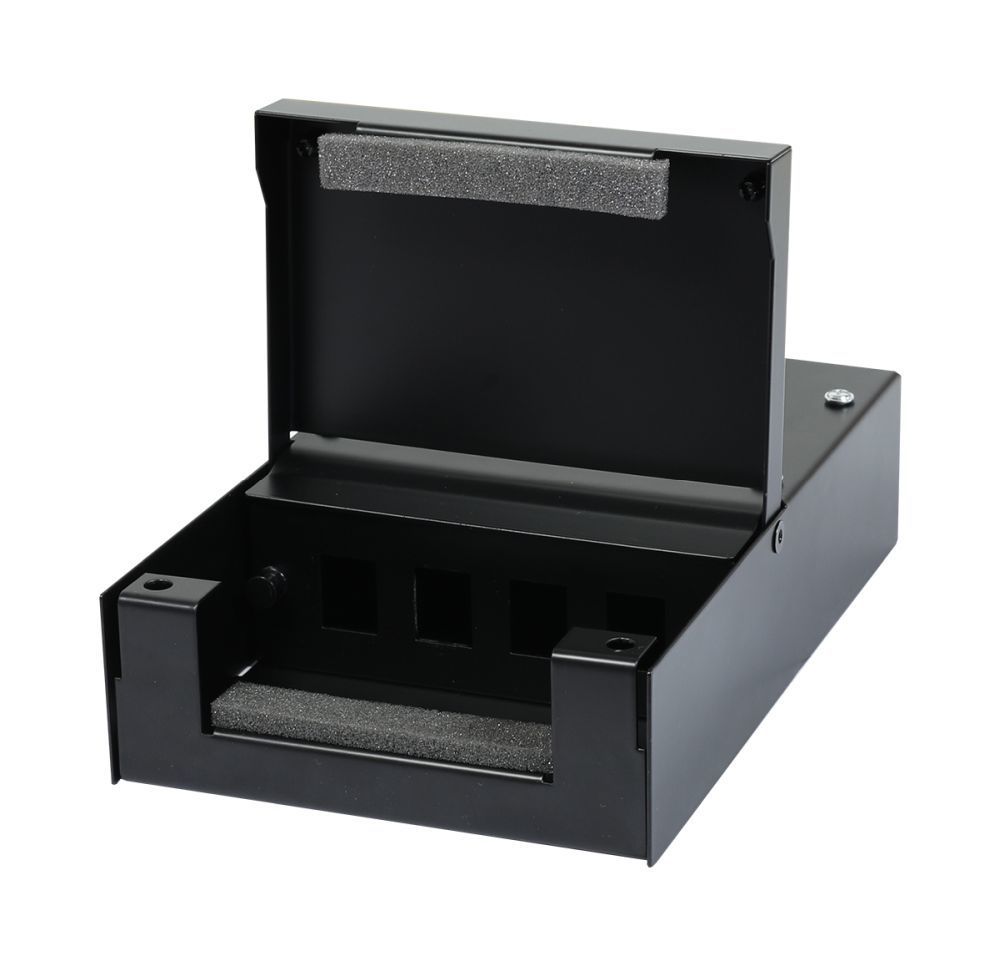 Passendes Zubehör für Keystone, Modulträger, Patchpanel für 4x TP-Modul, Aufputz, Metallklappbox(Consolidation Point Box), Schwarz, Synergy 21,