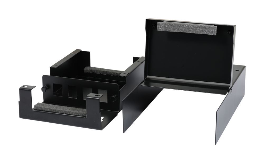 Der Artikel Keystone, Modulträger, Patchpanel für 4x TP-Modul, Aufputz, Metallklappbox(Consolidation Point Box), Schwarz, Synergy 21, ist derzeit auf Lager