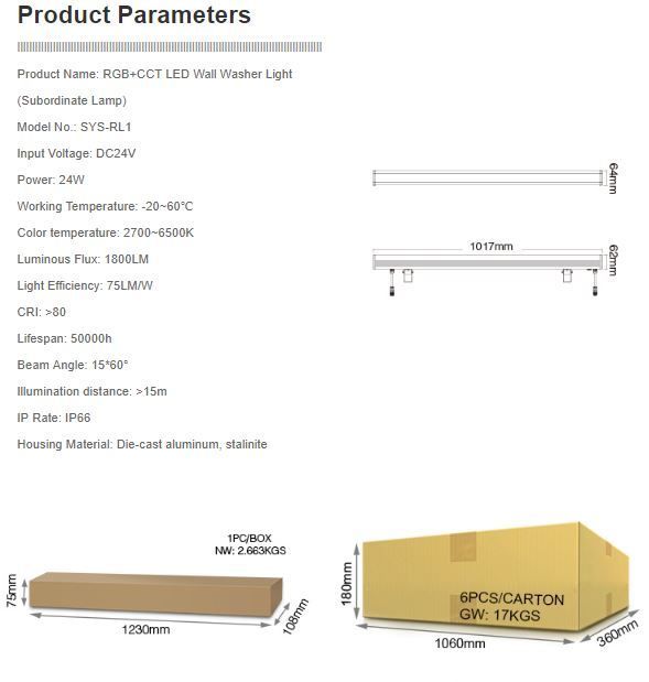 Product Name: 15W RGB+CCT LED Garden Light (Subordinate Lamp) Model No.: SYS-RC2 Input Voltage: DC24V Power: 15W Working Temperature: -20~60? Color temperature: 2700~6500K Luminous Flux: 1200LM Light ...Lieske-Nr.: 1376003 Hersteller-Nr.: SYS-RC2 |