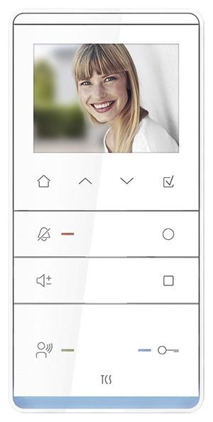 IP Video Innenstation zum Freisprechen.TFT-Display 8,9 cm ( 3,5 Zoll ).Aufputz-Montage über UP-Dose oder mittels seperatem Zubehör TASTA Montageschale AP mit zusätzlichem Kabelstauraum.Tischmontage mit seperatem TischZubehör.Intuitive Bedienung der Hauptfunktionen durch differenzierte Tasten.Intuitive Bedienung der Nebenfunktionen durch verständliches Menü im Display.Ambientebeleuchtung im Schallaustritt als Orientierungslicht, de-bzw. aktivierbar, Anzeige Anruf konfigurierbar.Besonders große Türöffnertaste mit optischer Anzeige.Besonders große Sprechentaste mit optischer Anzeige.Funktionstasten1+2 frei belegbar mit den Funktionen Action URL, DTMF Zeichen, Direktruf.Ruf-Aus-Taste zur Ruftonabschaltung mit optischer Anzeige.Lautstärketaste zum Einstellen der Rufton- und Sprachlautstärke.Anschluss für Etagentaster am Gerät vorhanden.Auswahl aus 13 Ruftönen, vom Benutzer einstellbar.Ruftonlautstärke in 4 Stufen vom Benutzer einstellbar.Akustische Rufunterscheidung zwischen 2 Haustür-, Wohnungstür- und Internruf.Montageschale mit gesteckter Schraubklemme vorinstallierbar.Konfigurationssoftware zur komfortablen Anlagenkonfiguration am Windows PC.Akustische und optische Fehleranzeige für zeitsparende Inbetriebnahme.Funktional erweiterbar durch seitlichen Einschub mit Funksendeplatine zur Ansteuerung Funksignalgerät.Bildspeicherfunktion der letzten Türrufe.Intern- und Concierge-Ruffunktion.Audio- und Video-Innenstationen sind innerhalb einer Anlage kombinierbar.Daten und Stromversorgung über ein Kabel (POE).Energieeffizient durch geringen Stand-by-Verbrauch.Geprüft nach EN 50486. Farbe: weiß.Gehäuse aus antistatischem und recycelbarem Kunststoff.UV-