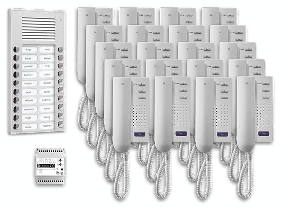 20x Türtelefon 4Tasten WS, Artikelnummer: ISH3030-0140, 1x Vers. + Steuerg. BVS20 1Strang 4TE, Artikelnummer: BVS20-SG, Das Paket ist ab Werk vorkonfiguriert und bedingt erweiterbar,