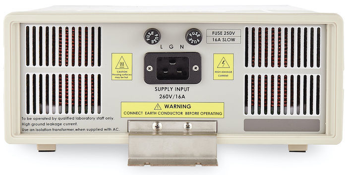 Das Gerät ist für die Prüfung von einphasigen, wechselstrombetriebenen Geräten mit Versorgungsspannungen bis maximal 240V und 16A ausgelegt.