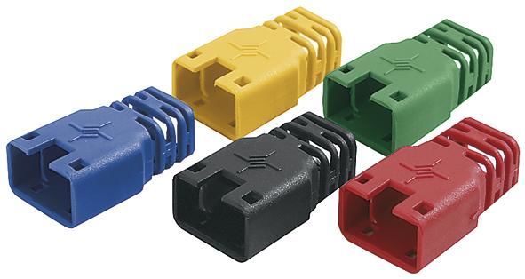 Ein umfangreiches Sortiment ein- und zweiteiliger Knickschutztüllen in verschiedenen Farben und für Kabeldurchmesser von 5,0 bis 7,3 mm schützt das Kabel und unterstützt gleichzeitig die farbliche Kennzeichnung der Stecker.