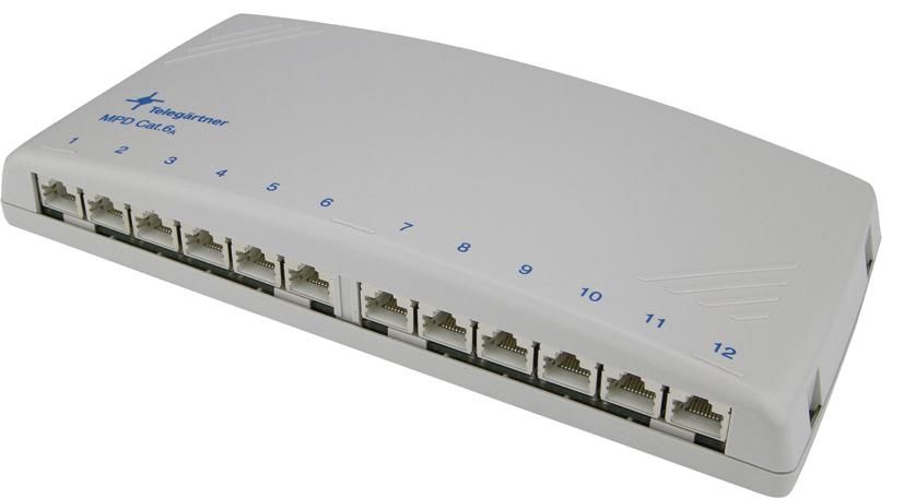 Der Artikel Telegärtner 100006998 TEGA Mini-Verteiler geschirmt lichtgrau MPD12-HS K Cat.6a ist derzeit auf Lager