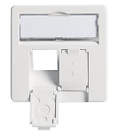 Kurzbezeichnung: Zentralplatte 50 x 50 mm für AMJ45 8/8 UP/0 und designfähige Modul-Aufnahme AMJ-S, mit Schraube, Beschriftungsschild, Abdeckung und 2 Schutzklappen