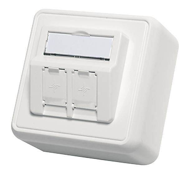 Ausführung: 2-fach AP inkl. Modulträger, Beschriftungsfenster und Schutzklappen, unbestückt