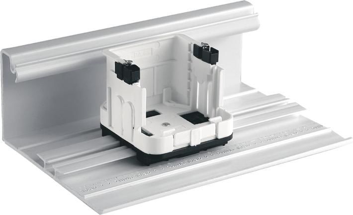 Der Geräteeinbauträger ist einsetzbar in den Kanalsystem dieverser Hersteller wie z.B. Ackermann, Rehau, Tehalit, etc. Die Befestigung erfolgt auf C-, Hut- und Kombischienen in der 35 mm-Spur.