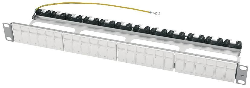 Ausführung: inkl. 24 snap-in Modulaufnahmen, Kabelführung, Kabelabfangung und Potentialanschluss-Set, unbestückt