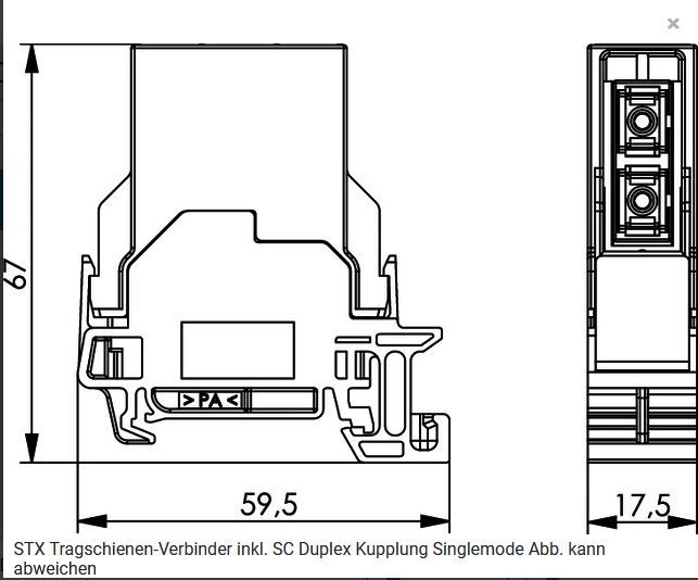 Telegärtner LWL, STX Tragschienen-Verbinder inkl. SC Duplex Kupplung Singlemode