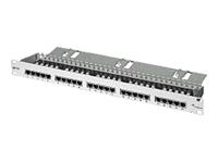 48,3 cm ( 19 Zoll ) Einschubgehäuse 1 HE mit 25, 30 oder 50 RJ45-Anschlussbuchsen auf einer gemeinsamen Leiterplatte,Anschluss der Adern über LSA-Plus-Schneidklemmen,