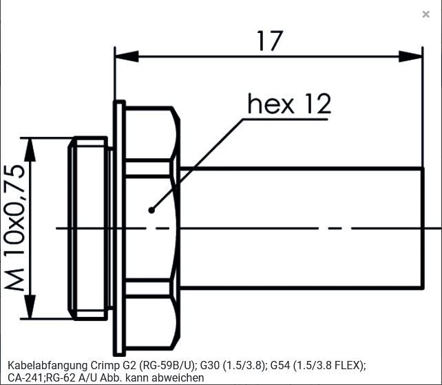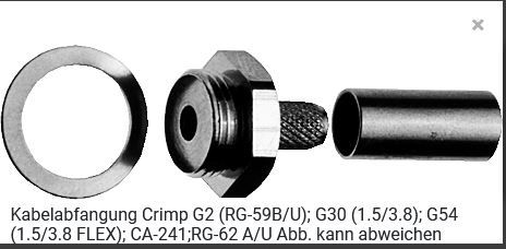 Telegärtner Koax, Kabelabfangung Crimp G2 (RG-59B/U) G30 (1.5/3.8) G54 (1.5/3.8 FLEX) CA-241RG-62 A/U