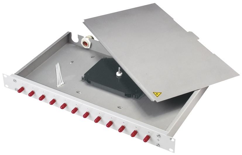 Zum Anschluss von Bündeladerkabeln und TICNET-Strecken,Zur Aufnahme von bis zu 12 Spleißkassetten,