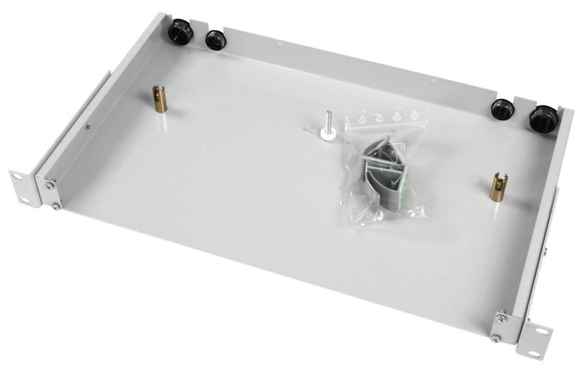 Anmerkungen Geschlossenes 19´-Gehäuse mit Deckel, mit Aufnahme für maximal 8 Spleiß- oder Kombikassetten, mit integrierten Kabeleinführungsöffnungen links und rechts für je eine M20- und eine M25-Verschraubung, mit zusätzlichen Zugentlastungsklemmen und Führungen zur Faser- und Kabelablage, Schutzart IP 20