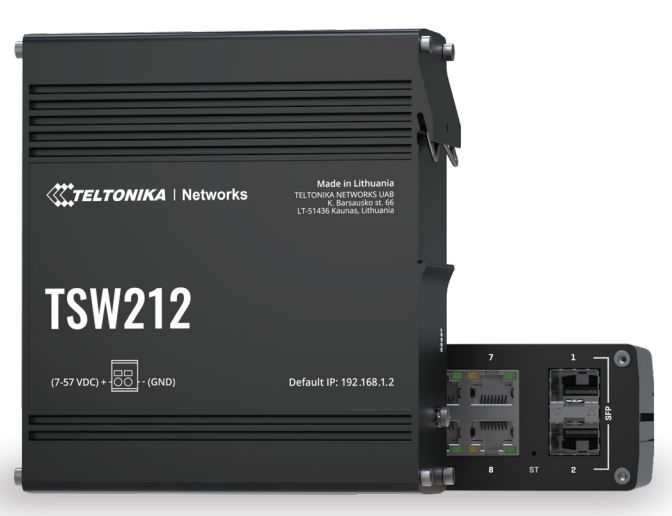 Teltonika · Switch · TSW212 · 8 Port Gigabit Industrial managed Switch, 2 SFP