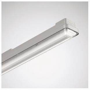 IP 66 für den Einsatz in Anwendungen mit hohen Anforderungen an Variabilität, Effizienz, Lichtqualität und Technik. Die Leuchte ist Bestandteil eines Sortiments mit baugleichen, montagetechnisch kompatiblen Varianten. Diese Varianten sind mit alternativen optischen Systemen, Light-Engines mit einstellbaren Lichtströmen sowie mit Anbindungsoption an Lichtmanagement- und Notbeleuchtungssysteme verfügbar. Mit integriertem HF-Bewegungssensor. Form des Erfassungsbereiches ellipsenähnlich. Breite des Erfassungsbereiches: 1 - 5 m. Länge des Erfassungsbereiches: 0,5 - 5 m. Funktionsparameter des HF-Bewegungssensors über optionale, als Zubehör erhältliche IR-Fernbedienung einstellbar. Mit der als Zubehör erhältlichen IR-Fernbedienung können die Funktionsparameter Signalstärke, Haltezeit, sowie in Verbindung mit Leuchten der Schaltungsart ETDD Lichtwert und Dimmniveau eingestellt werden. Geeignet zur Anwendung in HACCP, IFS und/oder BRC Global Standard Food zertifizierten Unternehmen. Mit begrenzter Oberflächentemperatur, für den Einsatz in feuergefährdeten Räumen gemäß DIN EN 60598-2-24 geeignet. Mit Cliplos-Verschlusstechnik zur schutzartgerechten, einfachen Montage von Diffusor-Abdeckwanne und Leuchtenkörper nach dem Anschluss. Abgehängte Montage über optionales Zubehör möglich. Deckenmontage über beiliegende Edelstahl-Befestigungsklammer. Abgehängte Montage über optionales Zubehör möglich. Mit einer prismierten, lichttechnisch wirksamen, transluzenten PMMA-Abdeckwanne, direkt strahlend. Mit symmetrisch breit strahlender Lichtstärkeverteilung. Leuchtenlichtstrom und Lichtfarbe fest eingestellt. Bemessungslichtstrom 6500 lm, Bemessungsleistung 40 W, maximale Leuchten-Lichtausbeute 163 lm/W. Lichtfarbe neutralweiß, ähnlichste Farbtemperatur (CCT) 4000 K, allgemeiner Farbwiedergabeindex (CRI) Ra > 80. Farborttoleranz (initial MacAdam) = 3 SDCM. Mittlere Bemessungslebensdauer L80(tq 25 °C) = 70.000 h, mittlere Bemessungslebensdauer L80(tq 35 °C) = 50.000 h. Die Lichtquelle ist entsprechend der Ökodesign-Anforderungen (VO (EU) 2019/2020) austauschbar. Leuchtenkörper aus PC. Leuchtenkörper Farbe lichtgrau (RAL 7035). Maße (L x B): 1552 mm x 102 mm, Leuchtenhöhe 91 mm. Zulässige Umgebungstemperatur (ta): -30 °C - +35 °C. Schutzklasse (EN 61140): I, Schutzart (DIN EN 60529):
