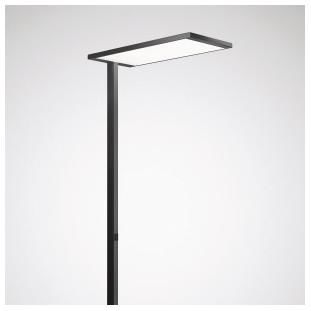 Exklusive LED-Standleuchte mit direktem und indirektem Lichtstromanteil. Für Normgerechte Ausleuchtung von Einzel- und Doppelarbeitsplätzen. Mit integriertem Passiv-Infrarot-Präsenzmelder und Tageslichtsensor. In Formensprache und lichttechnischen Eigenschaften harmoniert die Standleuchte mit Hänge- und Anbauleuchten sowie weiteren Standleuchten-Varianten im Projekt. Die Lieferung der Leuchte erfolgt zum Schutz der Einzelkomponenten in 4 Packstücken. Der Direktanteil der Leuchte bewirkt mit seiner breiten, leicht asymmetrischen Lichtstärkeverteilung eine sehr gleichmäßige Ausleuchtung der Schreibtischoberfläche. Der Indirektanteil mit lambertscher Lichtverteilung bewirkt eine optimale Raumausleuchtung. Mit asymmetrisch breit strahlender Lichtstärkeverteilung. Bildschirmarbeitsplatzgerecht gemäß EN 12464-1 Leuchtenlichtstrom und Lichtfarbe fest eingestellt. Bemessungslichtstrom 8700 lm, Bemessungsleistung 62 W, maximale Leuchten-Lichtausbeute 140 lm/W. Lichtfarbe neutralweiß, ähnlichste Farbtemperatur (CCT) 4000 K, allgemeiner Farbwiedergabeindex (CRI) Ra > 80. Farborttoleranz (initial MacAdam) = 3 SDCM. Mittlere Bemessungslebensdauer L80(tq 25 °C) = 50.000 h. Die Lichtquelle ist entsprechend der Ökodesign-Anforderungen (VO (EU) 2019/2020) austauschbar. Leuchtenkörper aus Aluminium Strangpressprofil und Aluminium Druckguss. Leuchtenfuß in U-Form. Neigung des Leuchtenkopfes über zwei Madenschrauben in Längs- und Querrichtung justierbar. Oberfläche schwarz beschichtet (RAL 9005). Weitere Farben auf Anfrage erhältlich. Leuchtenhöhe: 2000 mm, Länge / Breite Standfuß: 500 mm / 320 mm, Länge / Breite Leuchtenkopf: 677 mm x 290 mm, Höhe Leuchtenkopf: 23 mm. Standrohrmaße: 50 mm x 28 mm. Schutzklasse (EN 61140): I, Schutzart (DIN EN 60529):