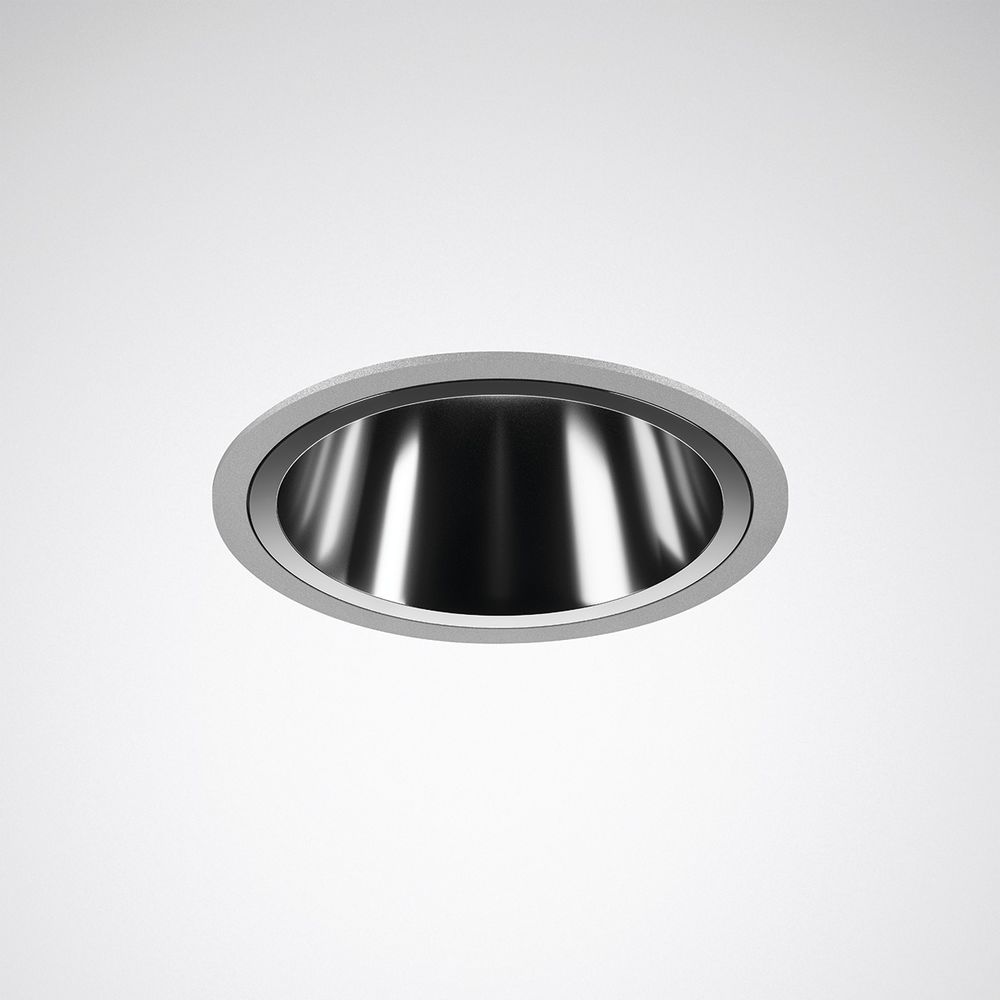 Kompaktes LED-Downlight in runder Bauform. Einbau-Downlight mit Rand für gesägte Deckenöffnungen. Werkzeugloser Deckeneinbau durch Schnellmontagespanner. Deckenausschnittmaß Ø 150 mm. Sanierungsplatten für den Einbau in bereits vorhandene Deckenöffnungen mit unpassenden Maßen sind als separat zu bestellendes Zubehör verfügbar. Einbautiefe >= 130 mm, Leuchtenhöhe 133 mm. Mit hochglänzend bedampftem Kunststoffreflektor. Farbe des Deckeneinbaurahmens: silberfarbig. Symmetrische Lichtverteilungscharakteristik und Halbwertswinkel: 60° Very Wide Flood. Lichtlenkung durch Collimator-/Linsentechnologie. Begrenzung der Direktblendung gemäß UGR 19. Mit einem LED-Modul. Leuchtenlichtstrom 2.000 lm, Anschlussleistung 16,5 W, Leuchten-Lichtausbeute 121 lm/W. Lichtfarbe Neutralweiß, ähnlichste Farbtemperatur (CCT) 4000 K, allgemeiner Farbwiedergabeindex (CRI) Ra= 80. Farborttoleranz (initial MacAdam) = 3 SDCM entspricht einer sehr hohen Farbgleichheit der LED in der Anwendung. Mittlere Lebensdauer L90(tq 25 °C) = 50.000 h, mittlere Lebensdauer L80(tq 25 °C) = 100.000 h. Die Lichtquelle ist entsprechend der Ökodesign-Anforderungen (VO (EU) 2019/2020) austauschbar. Zulässige Umgebungstemperatur (ta): -20°C - +25°C. Gehäuse und Kühlkörper aus Aluminium-Druckguss. Schutzklasse (EN 61140): II, Schutzart (DIN EN 60529):