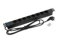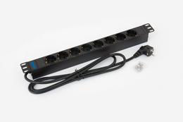 48,3 cm ( 19 Zoll ), 1HE, 8xSchutzkontakt(Dosen,CEE7) -> Schutzkontakt(Stecker,CEE7), 2m Zuleitung 3x1,5mm², 16A,