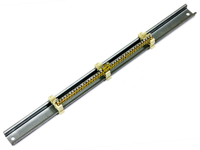 Erdungsmodul auf DIN-Leiste für die Montage an den 19-Vertikalen, 36 Anschlussplätze bis Maximalquerschnitt 10 mm², eine Zuleitungsplatz bis Maximalquerschnitt 25 mm²